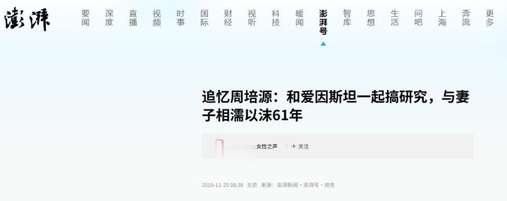 宇宙妇联女性之声——追思周培源:和爱因斯坦沿路搞辩论,与太太吴越同舟61年2019-11-25