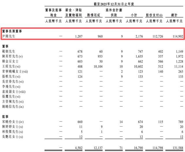 仅就2025年而言,小阔科技的以权柄结算股份支付开支共计约为1.15亿元,宽绰流向了该公司董事长、董事兼首席实行官(CEO)尹阔。2025年,尹阔的薪酬共计约为1.15亿元。其中,股份支付约1.13亿元。