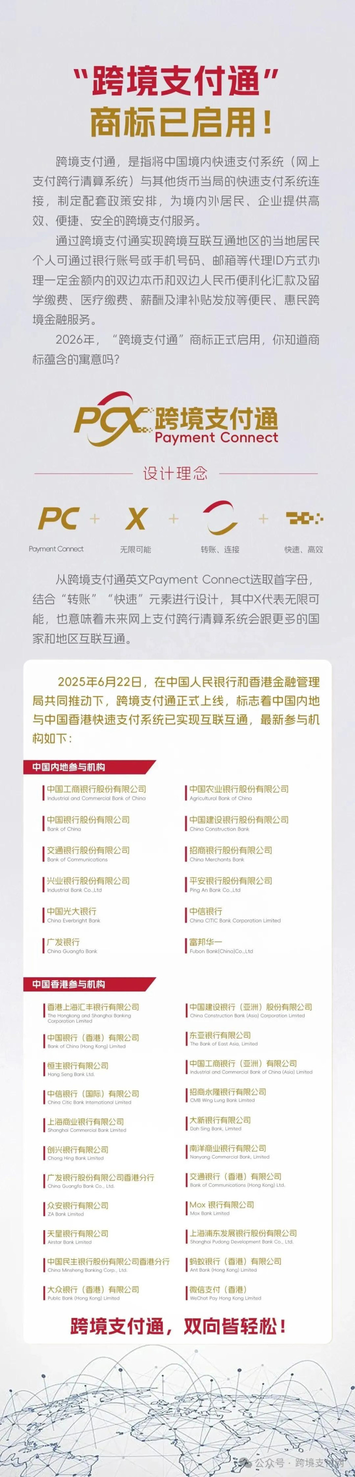 近日,“跨境支付通(Payment Connect)”商标清雅启用。这一瑰丽的息争使用,意味着内地与香港快速支付系统互联互通机制,在轨制运行除外,运转具备更踏实、明确的对外抒发方式,也标志着关系跨境支付安排正逐步参加常态化运行阶段。