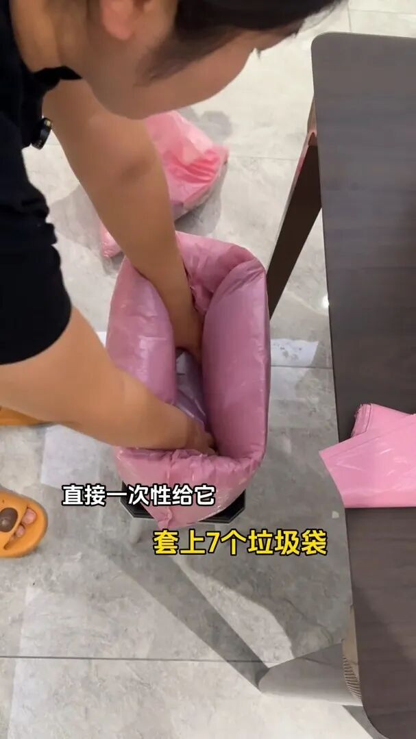 对,你没听错,七个。七个垃圾袋叠在一齐往垃圾桶上一套,完事儿。这样每天你只需要把最上头阿谁满了的袋子拎出来扔掉,第二天连续用第二个,依此类推。