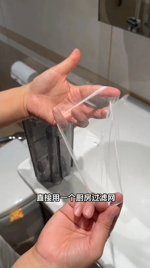 很浮浅,去超市买那种厨房过滤网,即是套在水槽漏斗上用的那种,大小刚好能套到吸污口上,再用个小皮筋给它箍住。