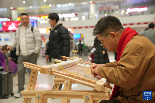2月10日,在徐州东站,手工艺东说念主现场制作汉绣。2月10日,在江苏徐州东站,一场“来徐州过大年”举止引诱了不少候车游客驻足围不雅。职责主说念主员现场制作、展示香包、剪纸、汉绣等20余种风气艺术品,营造浓厚的节日氛围,让游客体验到浓浓年味儿。新华社记者毛俊摄