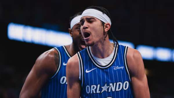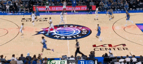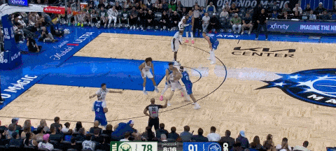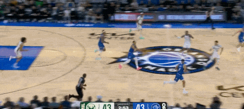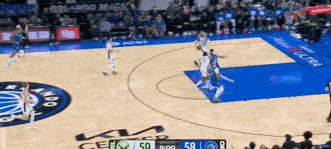 魔术阵脚战下的next站位:布莱克和萨格斯分居外线两侧,布莱克垄断小卡特的flare无球掩护向左侧出动拉开空间,萨格斯吊给布莱克,后者出动中快速抑止劝诱特纳补防,随后快速传给底角班凯罗,班凯罗接球掷中三分。
