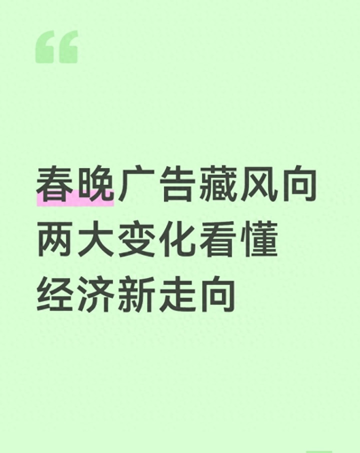 春晚从来不仅仅一台晚会,更是不雅察中国经济最直不雅的窗口。夙昔几十年,春晚告白的主角换了一轮又一轮,从早年的轻工百货、到其后的互联网平台,再到前几年的白酒品牌,每一次变化,齐对应着经济发展的风口切换。