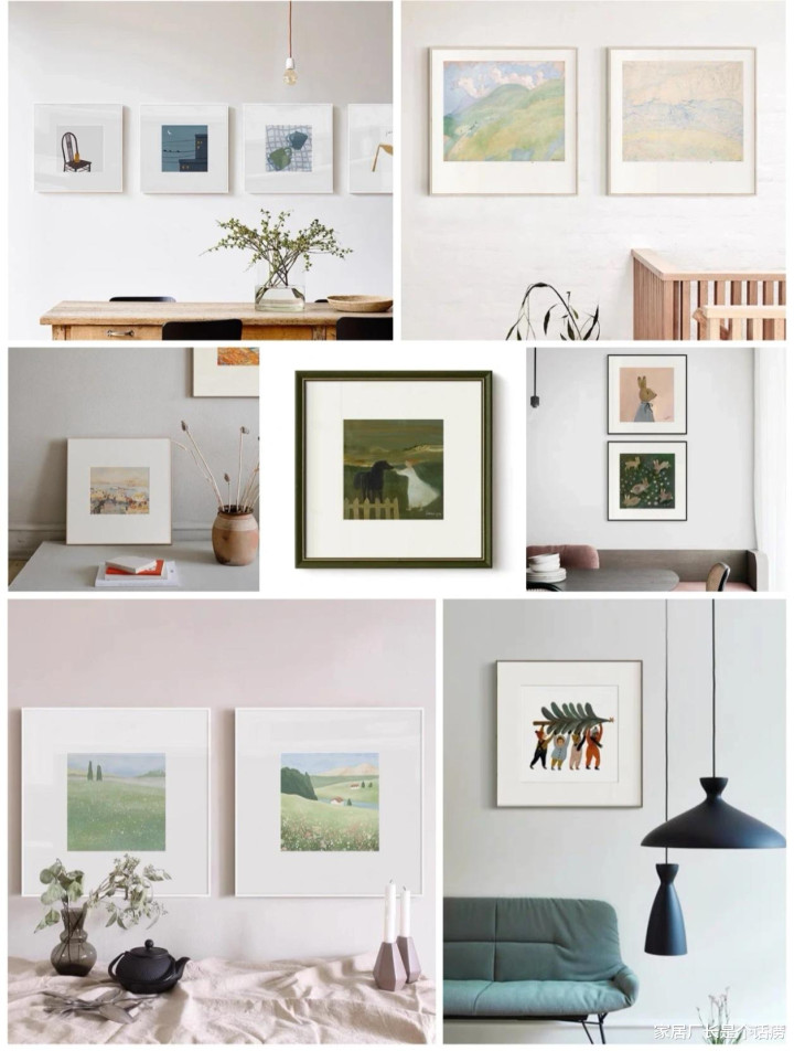 这个立场挂画忌讳“冷”和“硬”,因为与空间调性互斥。画框最佳选浅木色或者亚麻色的,别用那种亮晶晶的金属框,很碎裂实木场景。