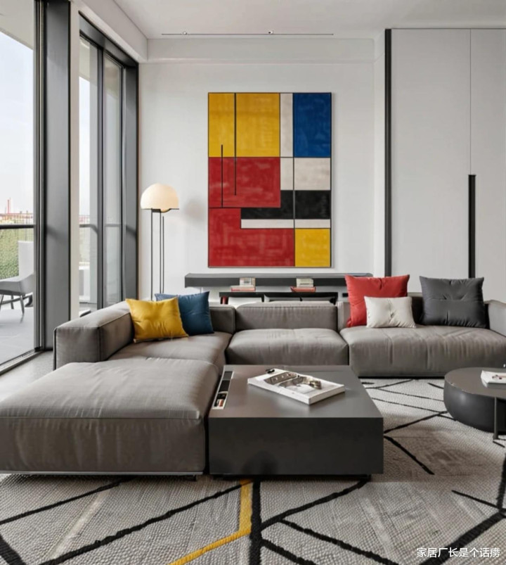 你家是当代检朴风:满房子好坏灰,线条干净利落。那你就得选“硬朗”一些的详细几何、极简线条、好坏影相,这些都不错配。