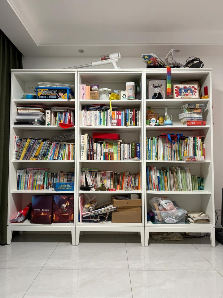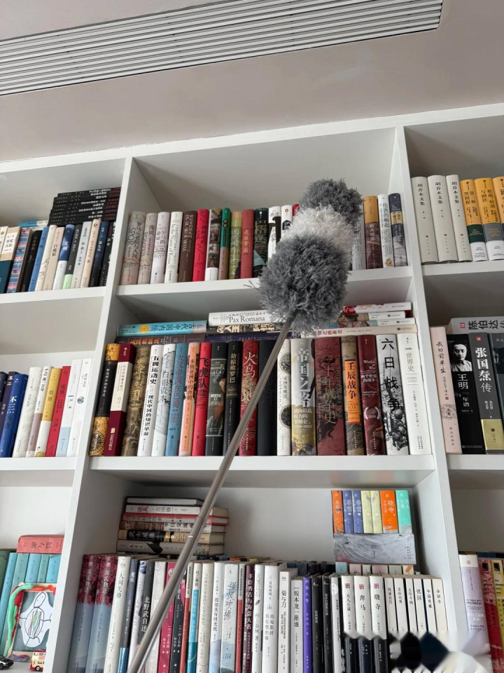 很容易脏,每天都要打扫上头的灰尘,另外便是这些册本摆件要整整皆皆的摆放,才会有好意思感,否则杂沓不胜,绝顶丢丑。