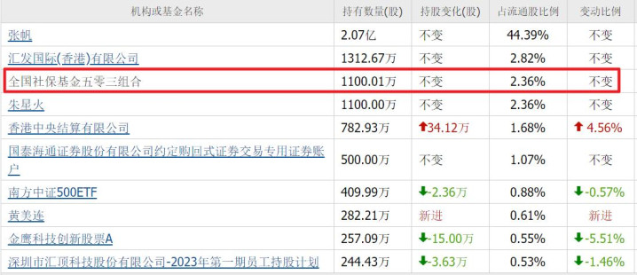 社保基金五零三不息重仓1100万股。