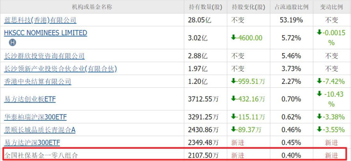 社保基金逐个四小幅减仓87万股,仍抓有1100万股。