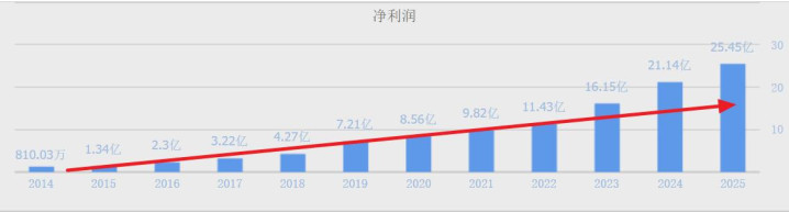 净利润自2015年以来已谄媚11年上涨,11年时辰大增308倍。