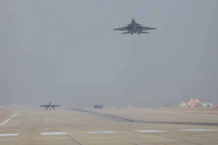 机务东谈主员加强对战机的季节性休养。
