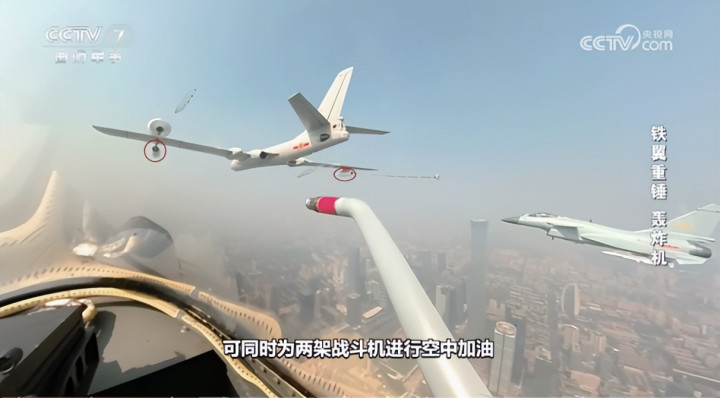 为了提高战机的滞空时分与作战半径,基于轰6平台研制了第一款空中加油机——轰油6,并于1995年解析投产。该机可捎带约37吨燃油,翼下加装两套软管式加油吊舱,具备同期为两架战争机奉行空中加油的才智。