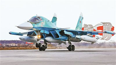 挂载3个副油箱的苏-34战机