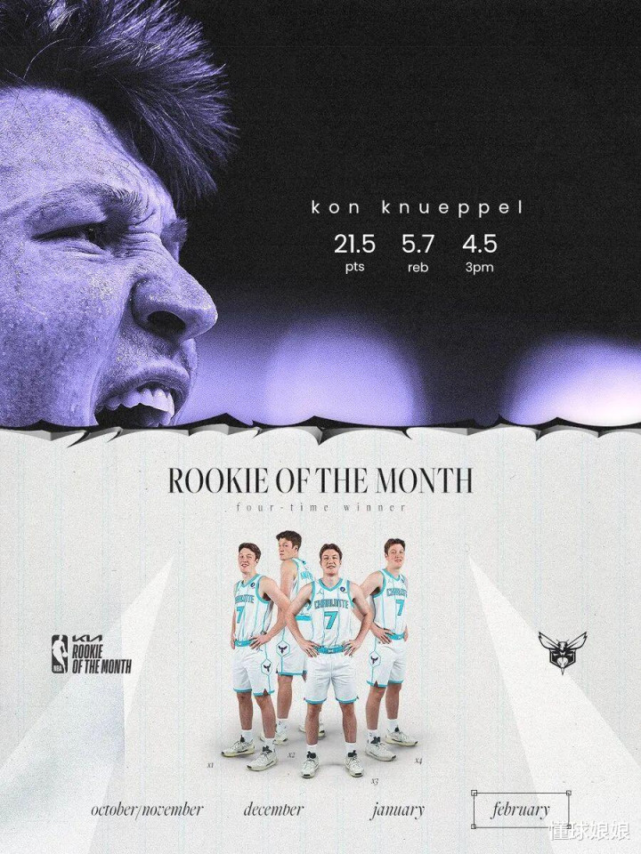 克努佩尔打了31分钟,14投7中,3分球8投4中,拿到了20分4板1帽夏洛特三少?!