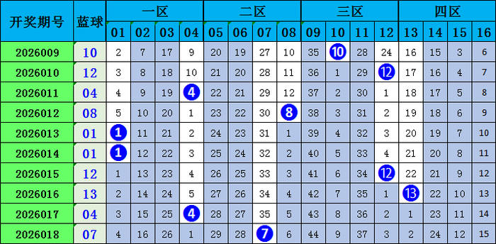 上期蓝球开出07,为小奇数号码。近10期大小比为4:6,近5期大小比为2:3;近10期奇偶比为4:6,近5期奇偶比为3:2,本期展望偶数蓝球热出,独蓝关爱一码:04。