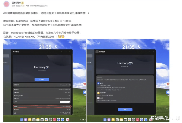 当先从麒麟X90处理器的音尘,近期华为MateBook Pro负责开启HarmonyOS 6.0.0.130 SP13版块升级,多名花粉在俱乐部响应,终于在对于本机界面看到了处理器型号。