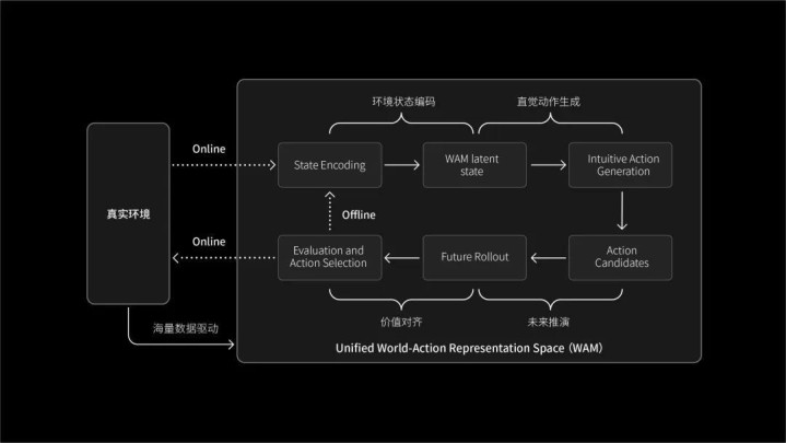 于是,寰球模子(World Model),以及进一步的环境与动作搭伙建模架构——World-Action Model(WAM),正在成为物理AI的重要基础模范。
