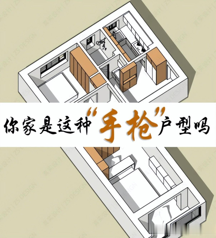 手枪型的户型就是全体的户型跟手枪相同,存在死角,户型小数齐不廉正,
